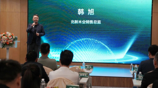 北新木業(yè)銷售總監(jiān)韓旭先生在峰會上發(fā)表講話,高度肯定此次聯(lián)名推新的重要意義。并指出,這次合作不僅是北新集團布局高端綠色板材市場的關(guān)鍵實踐,更通過央企私企協(xié)同為行業(yè)樹立了“資源共享、優(yōu)勢互補”的合作標桿,對推動建材產(chǎn)業(yè)升級具有重要示范作用。